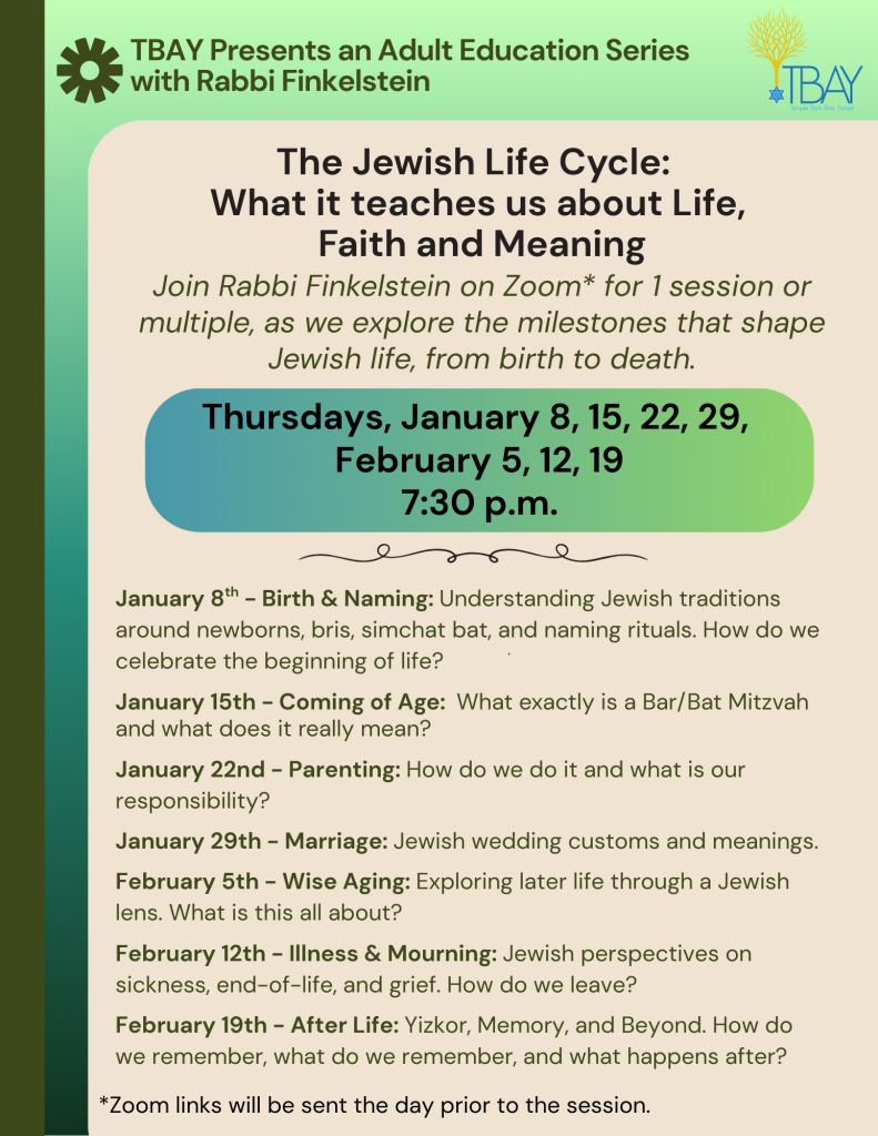 TBAY Presents an Adult Education Series with Rabbi Finkelstein