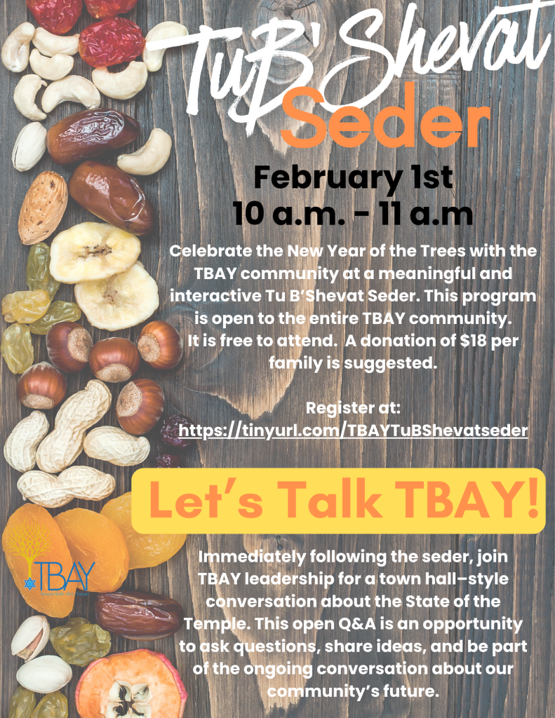 This program is open to the entire TBAY community. It is free to attend. A donation of $18 per family is suggested.
